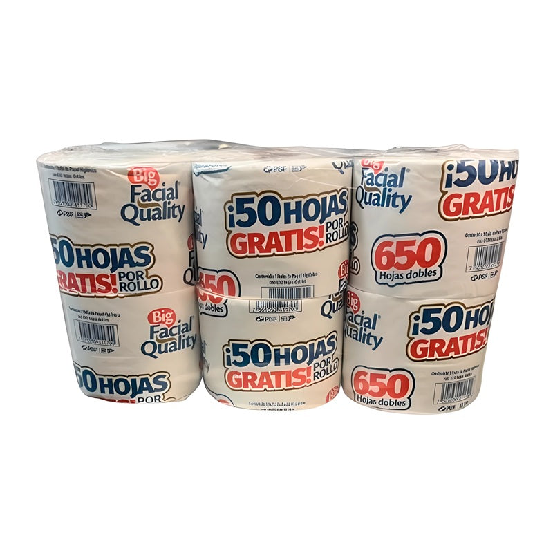 Big Facial Quality 650 Hojas | Papel Higiénico Suave y Rendidor